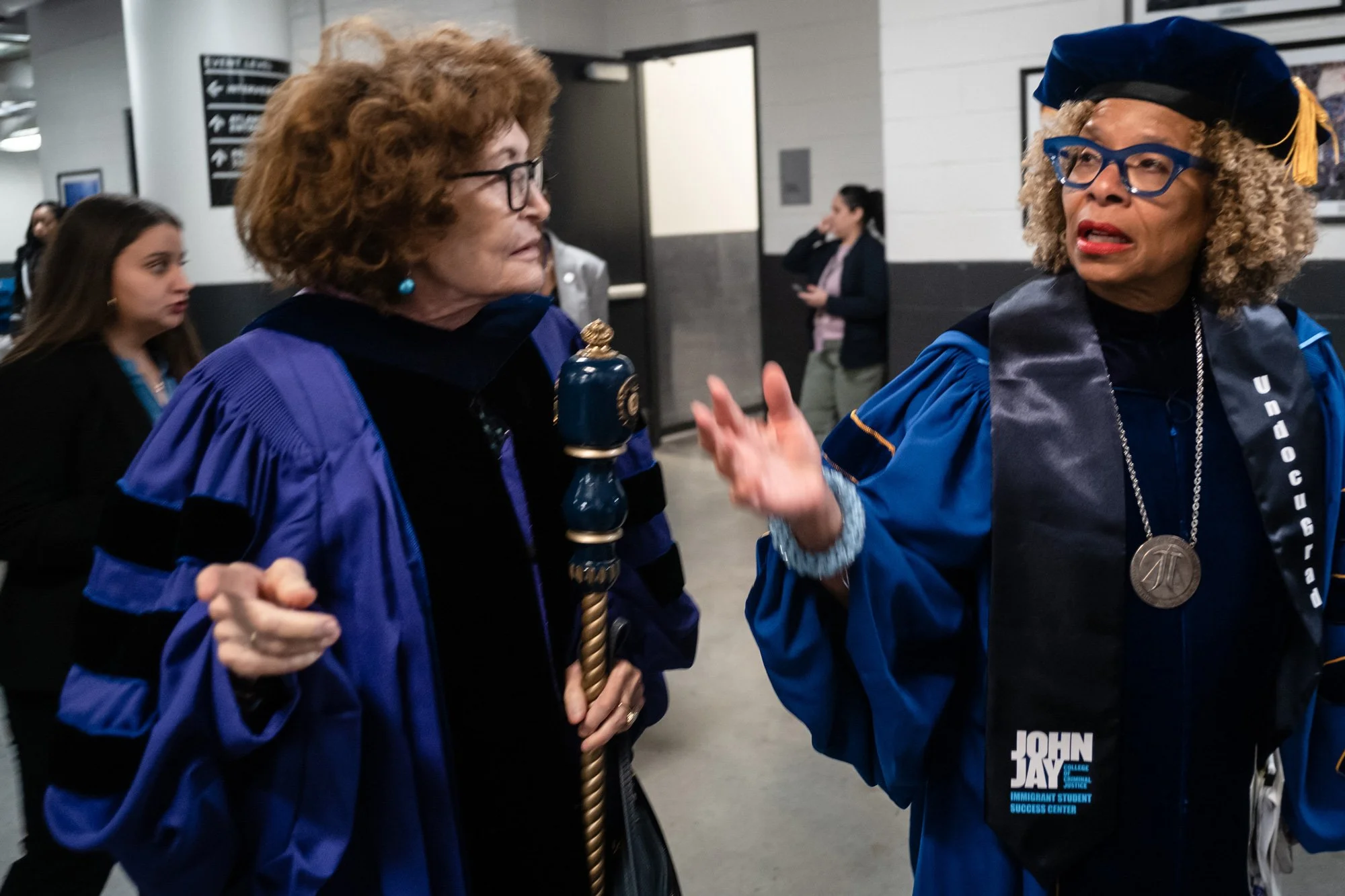 Professor Karen Kaplowitz, President of the Faculty Senate, with President Karol Mason © Donna Ferrato 2025