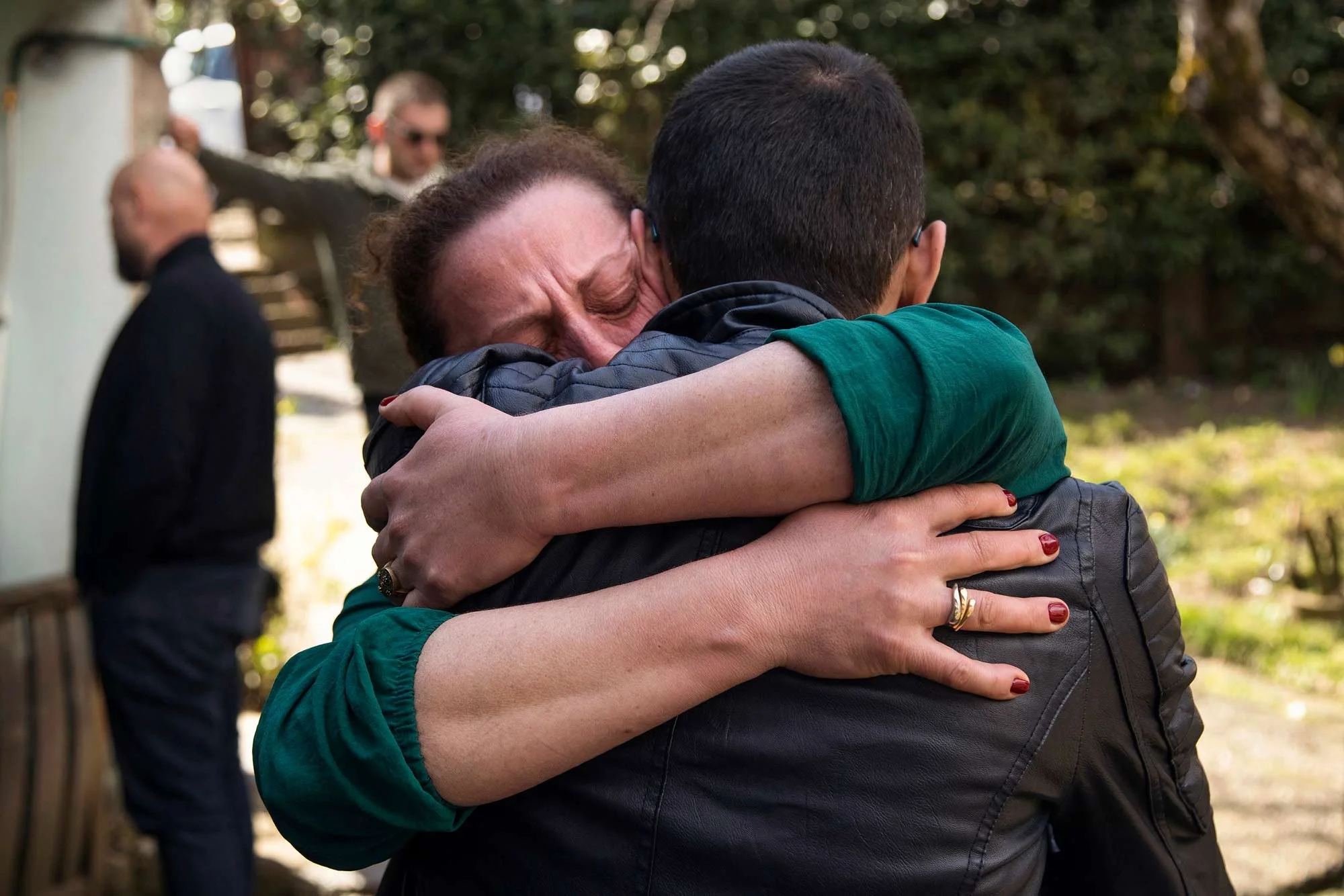 An aunt is hugging her long lost nephew, Giorgi, for the very first time on March 18, 2023, in Zestaponi, Georgia. Giorgi Siradze, 29 years old, was born in Zestaponi hospital and was declared dead by the doctor, when in reality he was sold for adoption. Decades later, a former nurse’s confession to a priest finally unraveled the mystery: Giorgi Gureshidze, declared dead by the hospital, was alive, adopted by a family in another city. The Siradze family’s nearly three-decade-long nightmare had finally ended when the priest informed the family that Giorgi was alive, unable to reveal the identity of the nurse.