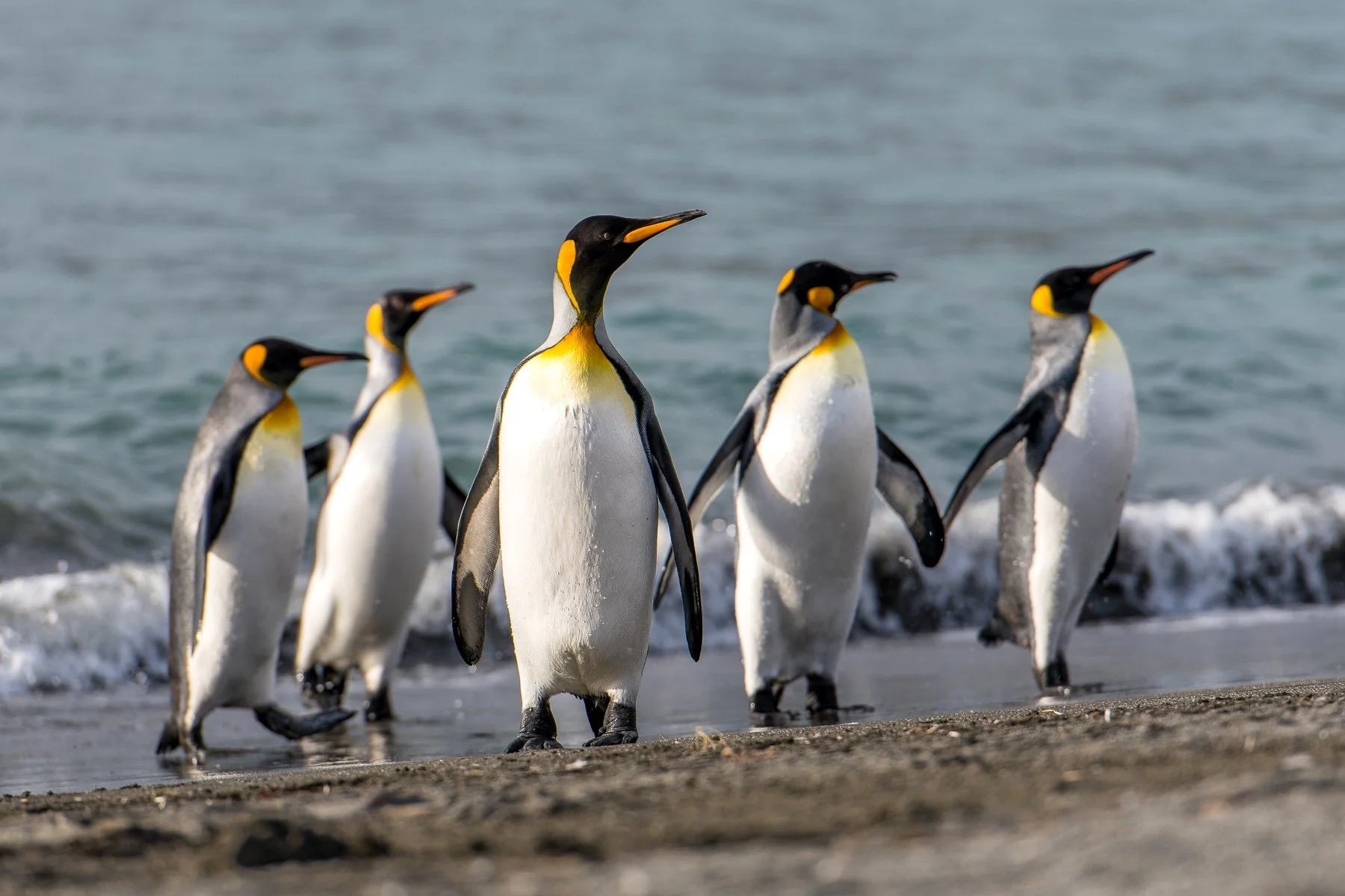 Penguins are among the most social of all birds. They may swim and feed in groups, but some may be solitary when diving for food. South Georgia.