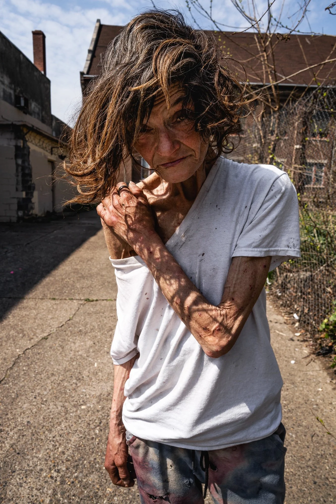 Alexandra, Kensington Avenue, Philadelphia. Alexandra’s arm was lost to a medically necessary amputation resulting from a devastating Tranq wound. Suzanne Stein