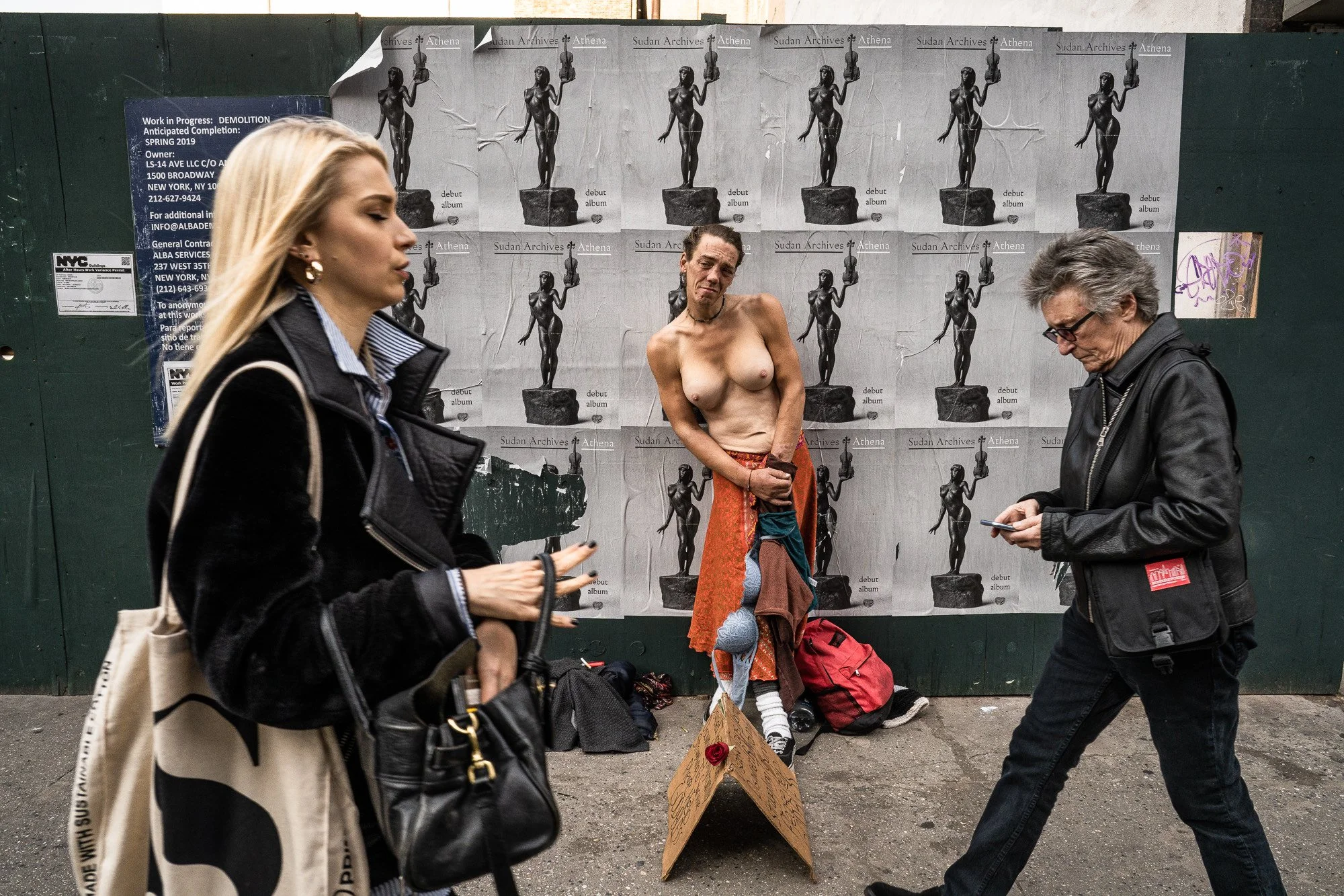 Bethany, 6th Avenue and 14th Street, NYC. “Bethany wanted to prove to me that she was, despite her unusual appearance, invisible to most people. So she took off her blouse and stood, staring into the camera, for several minutes. And…..I saw that she was right. Nobody looked, and not just because it was an unusual sight. They just didn’t really notice.” Suzanne Stein